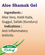 Amongst more than 200 molecules, Aloevera comprised of minerals, enzymes, hormones known for their action, 20 amino acids including 9 essential, responsible for formation of proteins & tissues and calcium for new cells. Bradykinase, Salicylic acid, Gibberlin & different Phytosteriods are known for their anti-inflammatory activity by inhibiting arachidonic acid via cyclooxygenase, without any side effect. Thus pain & inflammation is relieved. All molecules work individually & also in combination which is a rare phenomenon, called as Orchestra effect. Aloe Vera has rare property to penetrate all the seven layers of skin and also a good biological vehicle for all kinds of soluble & insoluble olecules. These properties of Aloevera encouraged us to prepare different combinations of medicinal-herbal molecules to fortify their own efficacy along with benefits of properties of Aloevera. |